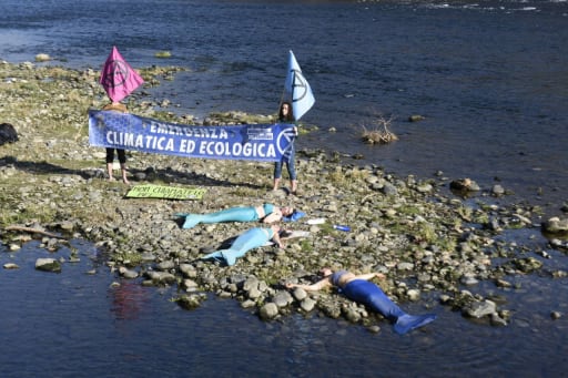 Alcune attiviste di Extinction Rebellion si sono vestite da sirene simulandone la morte e lo spiaggiamento nelle secche del Po. L’azione, dal grande impatto visivo, mira a mostrare gli effetti già in atto della crisi climatica ed ecologica. Le attiviste spiegano che la scelta di impersonificare le sirene ha un significato metaforico: l’essere mitologico, infatti, simboleggia tutto ciò che apparentemente non è strettamente necessario per la sopravvivenza umana, come l’arte, la fantasia e i sogni, e ai quali si dovrà rinunciare in un mondo devastato da catastrofi naturali e scarsità di materie prime, prima fra tutte l’acqua.
