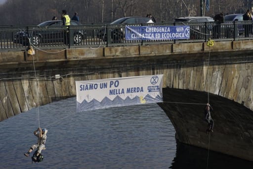 Alle 11, due attivisti di Extinction Rebellion si sono calati con gli imbraghi dal ponte della Gran Madre, in centro città, per stendere uno striscione che recita “Siamo un PO nella merda”. Poco dopo, altre attiviste si sono sedute in mezzo al traffico, reggendo dei cartelli con su scritte le proprie paure rispetto alle possibili conseguenze del collasso climatico di cui la comunità scientifica avverte i governi da decenni. Nonostante l’intervento delle forze dell’ordine, nessun attivista ha deciso di porre fine alla sua azione. Il traffico del centro città è così andato in tilt, tra il sostegno e la disapprovazione degli automobilisti.