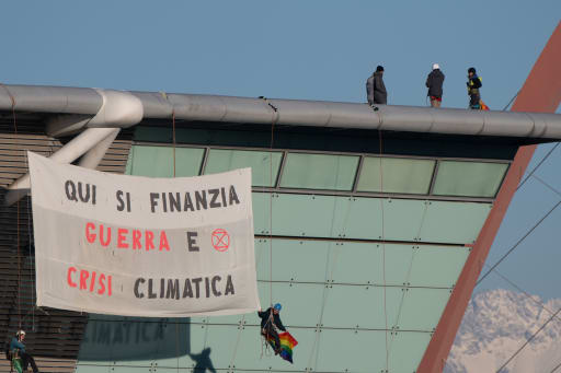 29/01/2024 – Sono cadute tutte le accuse contro gli attivisti di Extinction Rebellion e Fridays for Future per aver appeso, a novembre 2023, uno striscione dal tetto dell’Oval di Torino durante l’Aerospace and Defence Meeting. Reati come “invasione” e “violenza privata” sono stati archiviati con formula piena.