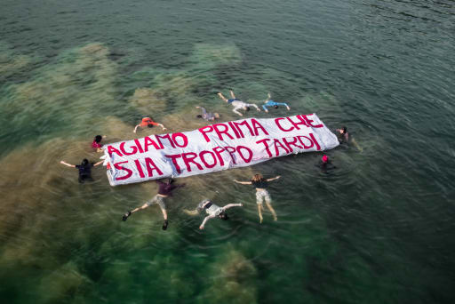 Con una performance dal significato tragico XR chiede al Governo di agire ora e di dare immediata applicazione alla mozione che riconosce l’Emergenza climatica appena approvata dal Parlamento, affinché non rimanga un mero atto simbolico.